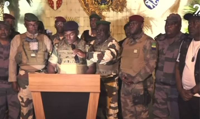 وفي وقت سابق من صباح الأربعاء الماضي، أعلن عسكريون في الجيش الغابوني، بقيادة قائد الحرس الجمهوري، بريس أوليغي نغيما، في خطاب متلفز، إلغاء نتائج الانتخابات وحل مؤسسات الدولة وإغلاق الحدود.
