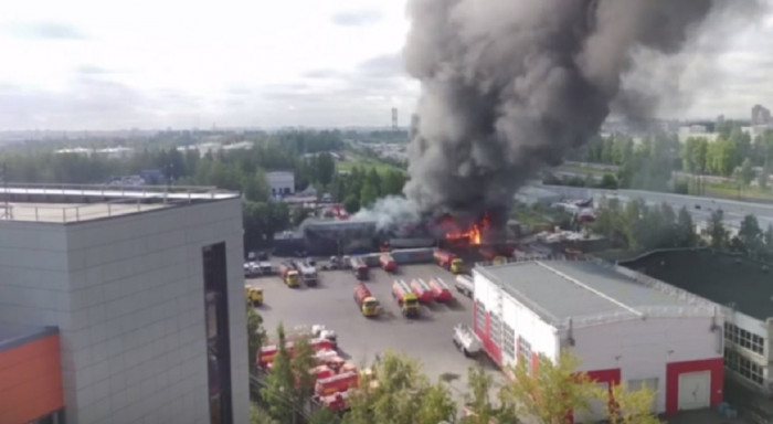 حريق هائل بمستودع للمحروقات في بطرسبورغ