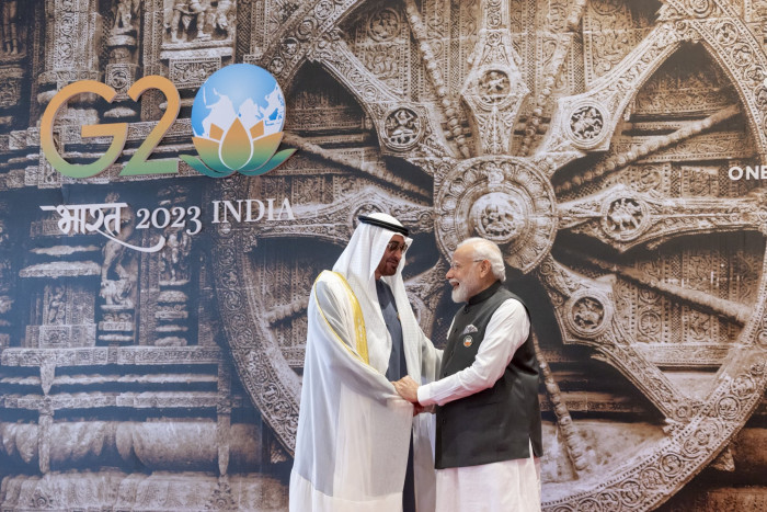 وكتبعبر تغريدة له على "تويتر" :"شاركت اليوم في قمة مجموعة العشرين في الهند، وعقدت لقاءات مثمرة مع عدد من القادة والمسؤولين المشاركين، بحثنا خلالها التعاون لمواجهة التحديات المشتركة وتحقيق التنمية المستدامة والازدهار للجميع".