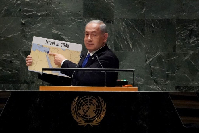 وأضاف نتنياهو، في خطاب أمام الجمعية العامة للأمم المتحدة، قائلًا: "أعتقد أننا على وشك تحقيق اختراق أكثر دراماتيكية ويتمثل في السلام بين إسرائيل والسعودية، مثل هذا السلام من شأنه أن ينهي الصراع العربي الإسرائيلي".