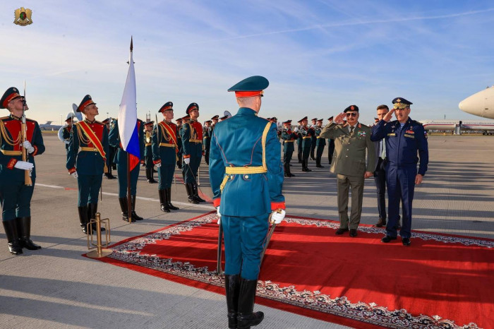 واستقبل نائب وزير الدفاع الروسي، يونس بيك يوفكيورف، حفتر لدى وصوله روسيا، حيث أجريت له مراسم استقبال رسمية عزف خلالها النشيد الوطني للدولتين ترحيبا بالزيارة.
