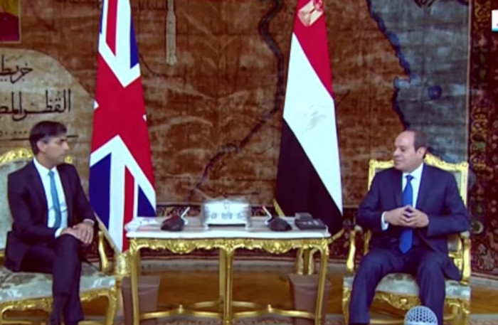 وكان قد وصل سوناك، إلى القاهرة اليوم الجمعة، للتباحث مع الرئيس عبدالفتاح السيسي، حول جهود عدم التصعيد في فلسطين، وقطاع غزة، الذي يشهد حصارا منذ 18 يوما، وقصفا عنيفا، راح ضحيته نحو 5 آلاف شهيد، و15 مصابا.