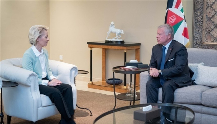 ونقل بيان للديوان الملكي عن العاهل الأردني قوله خلال استقباله رئيسة المفوضية الأوروبية أورسولا فون دير لايين، إن "استمرار إسرائيل في حربها البشعة على غزة وانتهاكاتها اللاشرعية في الضفة الغربية والقدس، سيدفع إلى انفجار الأوضاع في المنطقة بأسرها".