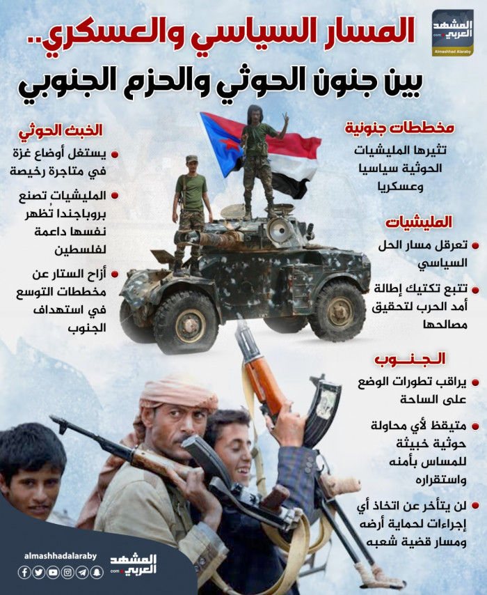 المسار السياسي والعسكري.. بين جنون الحوثي والحزم الجنوبي (إنفوجراف)