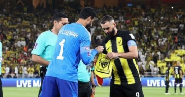 أهدر كريم بنزيما لاعب اتحاد جدة السعودي ركلة جزاء لفريقه أمام الأهلي في الدقيقة 45 من عمر المباراة التي تجمعهما في ربع نهائي كأس العالم للأندية.