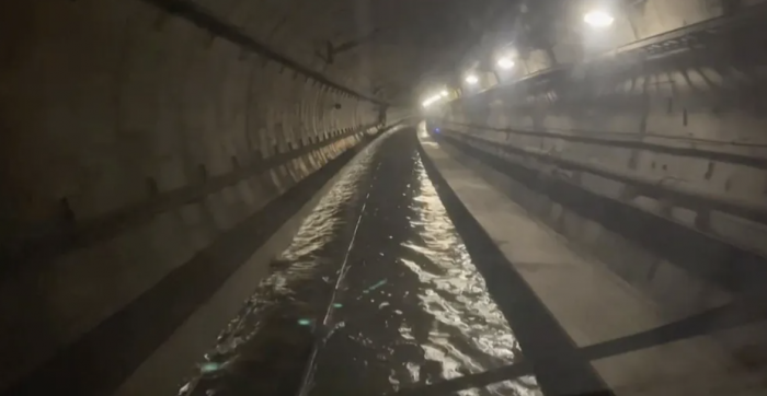 وأوضحت الشركة أن "فيضانات حدثت في نفقين لسكك الحديد بالقرب من محطة إبسفليت الدولية. وقد أدّى ذلك إلى إغلاق النفقين".