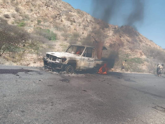التنظيم الإرهابي حاول إثبات حضوره، عبر تنفيذ عملية مستخدما فيها عبوة ناسفة، ضد طقم عسكري تابع للواء السادس دعم واسناد في وادي عومران شرق محافظة أبين.