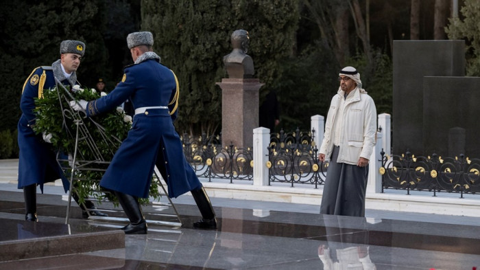 زار رئيس دولة الإمارات الشيخ محمد بن زايد آل نهيان، اليوم، ضريح مؤسس أذربيجان الحديثة حيدر علييف في مدينة باكو، ووضع إكليلاً من الزهور أمام الضريح، وذلك في إطار الزيارة الرسمية التي يجريها إلى أذربيجان.