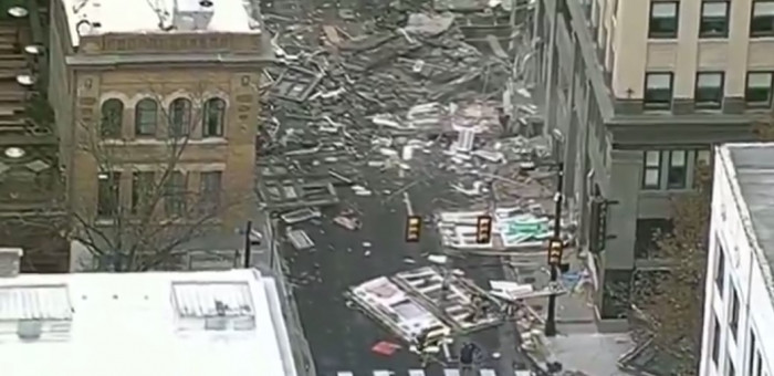 ووثقت لقطات مصورة من مكان الحادث أنقاضًا في أحد شوارع "فورت وورث" بين مبنيين ومسعفين في مكان الحادث.
