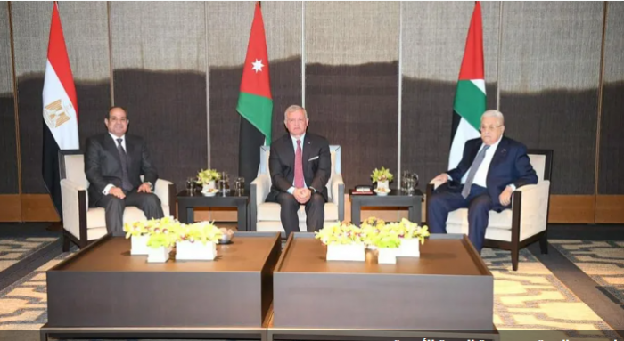أكد الرئيس المصري عبد الفتاح السيسي ونظيره الفلسطيني محمود عباس والعاهل الأردني الملك عبد الله الثاني، خلال قمة ثلاثية في مدينة العقبة الأردنية، رفضهم لأي محاولات لتهجير سكان قطاع غزة.