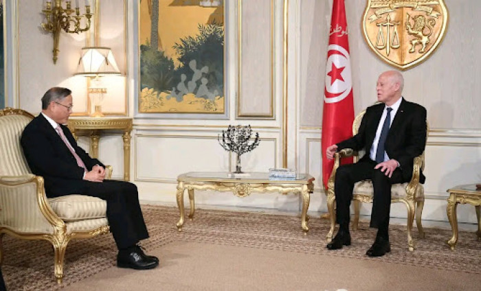 التقى الرئيس التونسي، قيس سعيد، الإثنين، وزير الشؤون الخارجية بجمهورية الصين الشعبية "وانج يي" في قصر قرطاج.