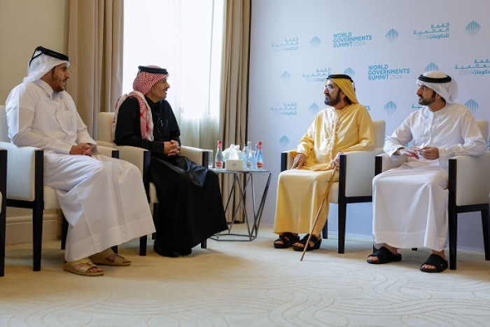 التقى الشيخ محمد بن راشد آل مكتوم نائب رئيس دولة الإمارات رئيس مجلس الوزراء حاكم دبي، الإثنين، الشيخ محمد بن عبدالرحمن بن جاسم آل ثاني، رئيس مجلس الوزراء وزير خارجية دولة قطر الشقيقة، بحضور الشيخ حمدان بن محمد بن راشد آل مكتوم، ولي عهد دبي، والشيخ مكتوم بن محمد بن راشد آل مكتوم، النائب الأول لحاكم دبي نائب رئيس مجلس الوزراء وزير المالية، وذلك ضمن أعمال أول أيام القمة العالمية للحكومات 2024.