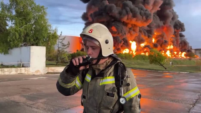 ووثقت صور ومقاطع فيديو نُشرت على تطبيق تيليجرام، ألسنة اللهب في موقع الهجوم وسحبًا كبيرة من الدخان تتصاعد في السماء.