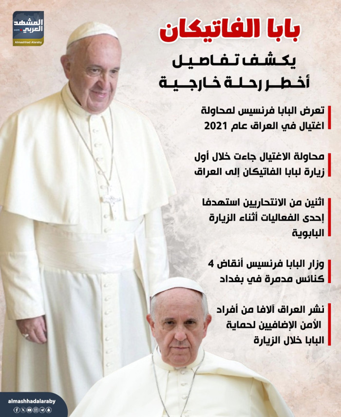 بابا الفاتيكان يكشف تفاصيل أخطر رحلة خارجية (إنفوجراف)