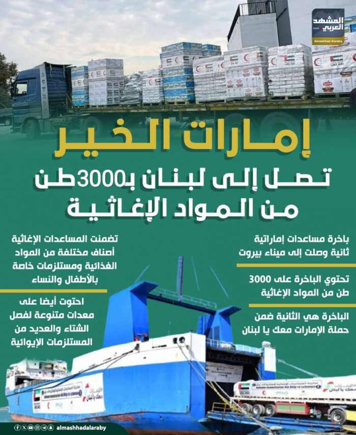 إمارات الخير تصل إلى لبنان بـ3000 طن من المواد الغذائية (إنفوجراف)