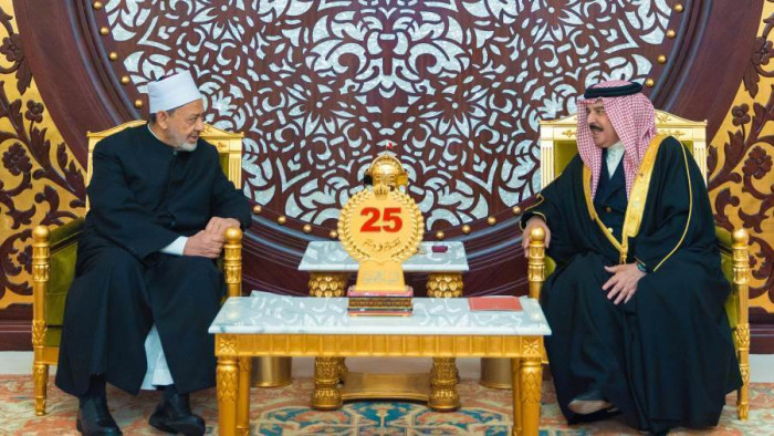 ملك البحرين يستقبل شيخ الأزهر في قصر الصخير