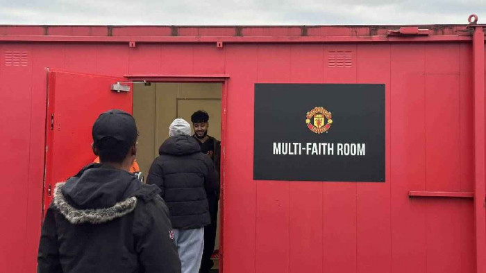 ونسق مسؤولو نادي مانشستر يونايتد مع رابطة المشجعين المسلمين للنادي على تجهيز هذه الغرفة التي تستوعب ما يصل إلى 20 مشجعًا لأداء الصلاة.