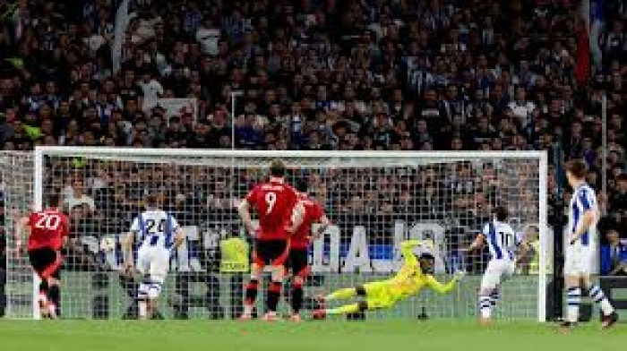 وحظي مانشستر يونايتد بفرصة واحدة حقيقية في الشوط الأول أمام سوسيداد عندما أطلق برونو فرنانديز تسديدة باتجاه المرمى لكن لاعبي الفريق الإسباني اعترضوا طريقها قبل أن يتابعها زيركزي لكن الحارس تصدى لمحاولته.