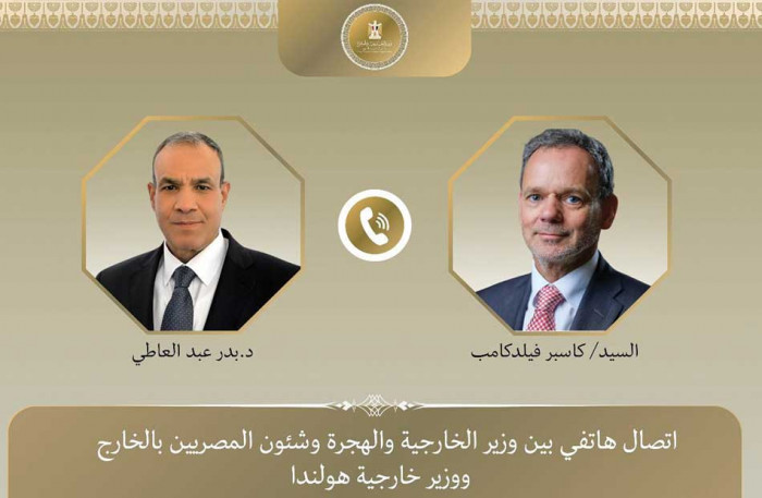 تلقى الدكتور بدر عبد العاطى وزير الخارجية والهجرة المصري اليوم الثلاثاء، اتصالاً هاتفيًا من كاسبر فيلدكامب وزير خارجية هولندا، وذلك للوقوف على مستجدات الأوضاع في قطاع غزة.