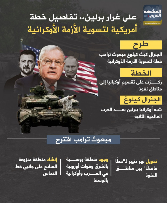 طرح الجنرال كيث كيلوغ مبعوث ترامب، خطة لتسوية الأزمة الأوكرانية، حيث ركزت على تقسيم أوكرانيا إلى مناطق نفوذ، مشبهاً الوضع في أوكرانيا بما حدث في برلين بعد الحرب العالمية الثانية.