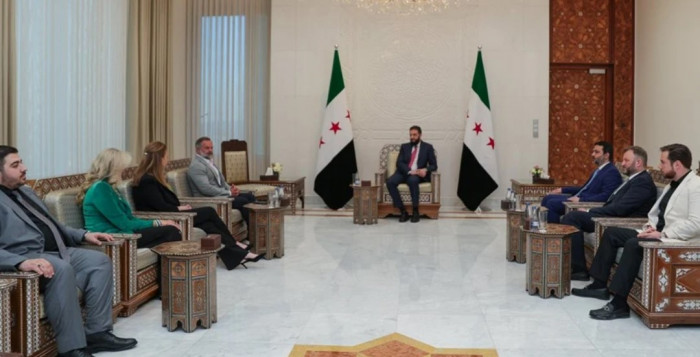 تحادث الرئيس السوري الانتقالي أحمد الشرع اليوم السبت، مع عضو في الكونغرس الأمريكي في العاصمة دمشق، وذلك في أول زيارة لنائب أمريكي منذ الإطاحة ببشار الأسد في ديسمبر الماضي.