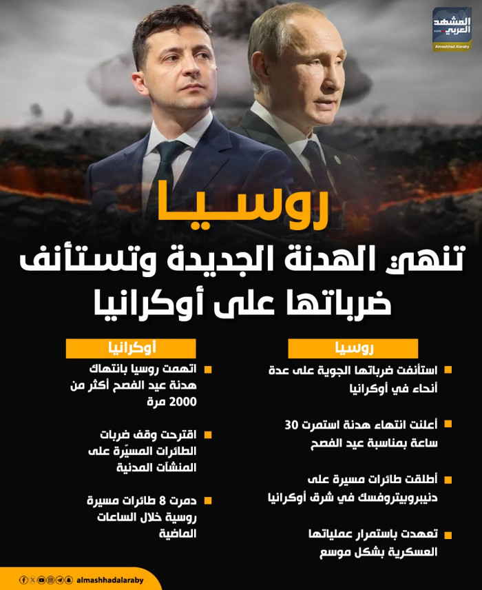 روسيا تنهي الهدنة الجديدة وتستأنف ضرباتها على أوكرانيا (إنفوجراف)