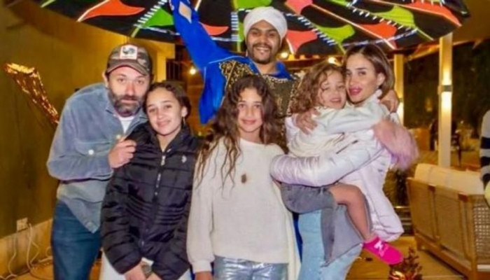 وقد ظهر الفنان المصري رفقة زوجته وبناته الثلاث أثناء تنزههم في أحد الأماكن العامة.