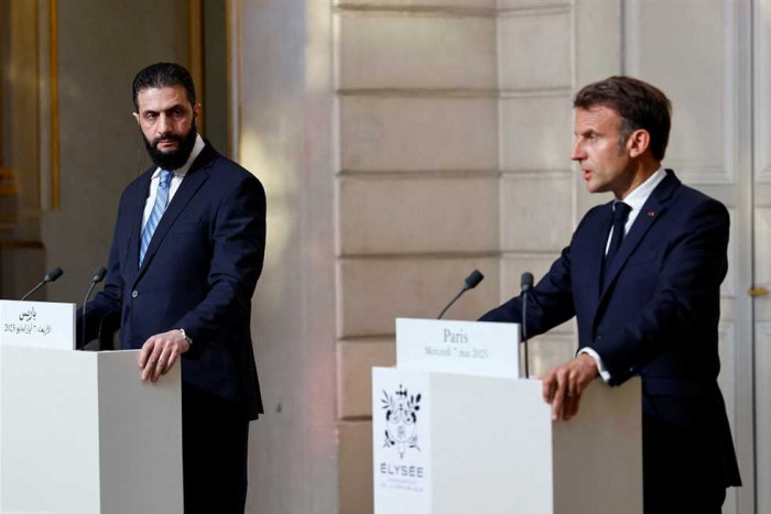 جاء ذلك خلال استضافته بالعاصمة الفرنسية باريس، الأربعاء، في أول زيارة له إلى دولة غربية، حيث شدّد ماكرون على ضرورة ضمان ملاحقة ومحاكمة مرتكبي أعمال العنف الطائفية ضدّ الدروز مؤخرًا، ومرتكبي "المجازر" بحق العلويين في مارس.