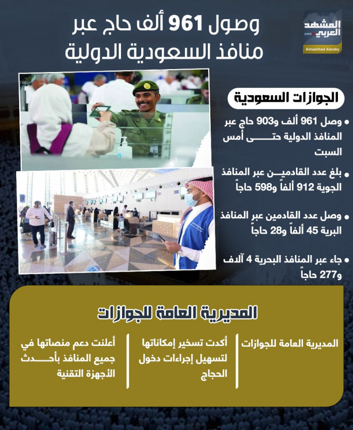 وصول 961 ألف حاج عبر منافذ السعودية الدولية (إنفوجراف)