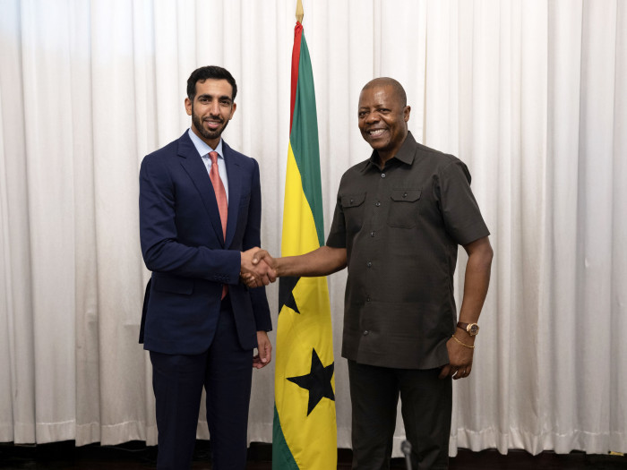 التقى الشيخ شخبوط بن نهيان آل نهيان وزير دولة الإماراتي، اليوم الأحد، أمريكو دي أوليفيرا دوس راموس رئيس وزراء جمهورية ساو تومي وبرينسب، خلال زيارة رسمية للعاصمة ساو تومي.