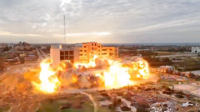 أعلنت وسائل إعلام فلسطينية، اليوم الخميس، أن جيش الاحتلال الإسرائيلي نسف مباني سكنية في قيزان النجار جنوب خان يونس.