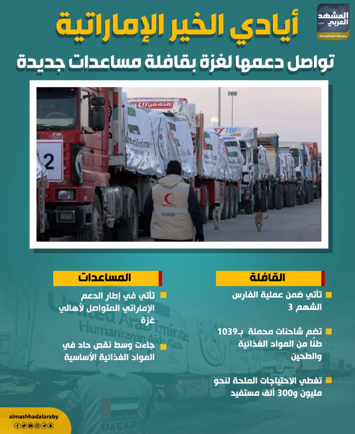 أيادي الخير الإماراتية تواصل دعمها لغزة بقافلة مساعدات جديدة ( إنفوجراف)