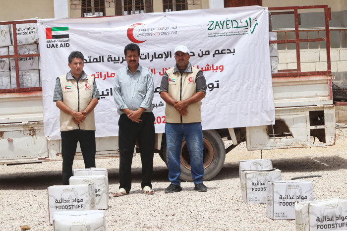 ففي هذا الإطار، وزَّعت هيئة الهلال الأحمر الإماراتي بالتعاون مع مؤسسة زايد للأعمال الخيرية والإنسانية، 300 طرد غذائي على الأسر الأشد فقرًا في مديرية رضوم جنوب محافظة شبوة.
