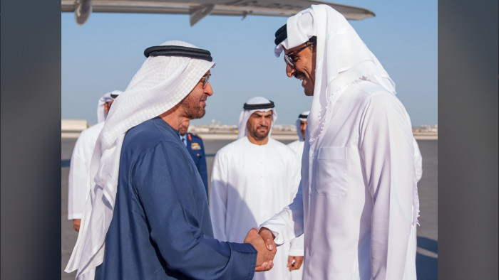 وكان الشيخ تميم بن حمد آل ثاني أمير دولة قطر الشقيقة، في مقدمة مستقبلي رئيس دولة الإمارات والوفد المرافق لدى وصوله مطار حمد الدولي.