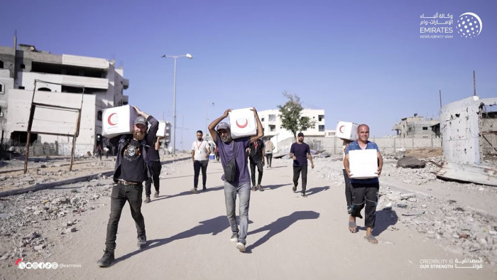 وكانت قوافل إماراتية قد دخلت شمال غزة نهاية الأسبوع الماضي، محمّلة بمواد غذائية لتكايا الطعام، ومستلزمات إنتاج الخبز، وطرود غذائية ضمن مواصلة دولة الإمارات والتزامها الواضح بتقديم الدعم والمساندة لسكان قطاع غزة.