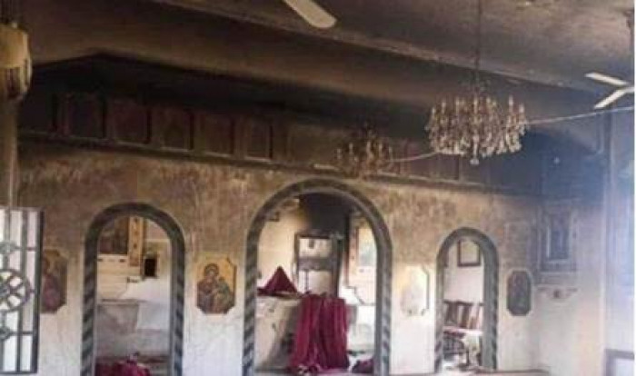 حرق كنيسة مار ميخائيل على يد مسلحين بالسويداء