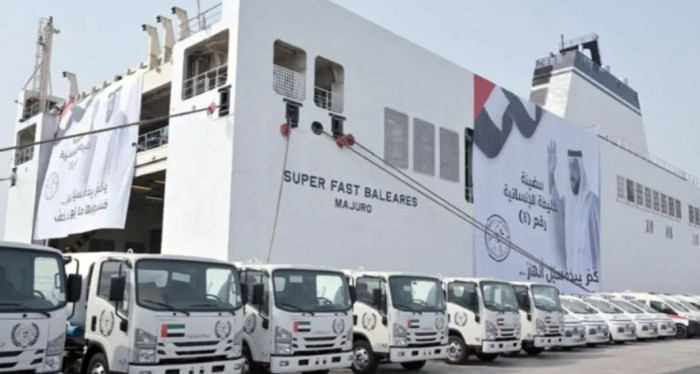 الإمارات ترسل سفينة محملة بـ7166 طنا من المساعدات إلى غزة