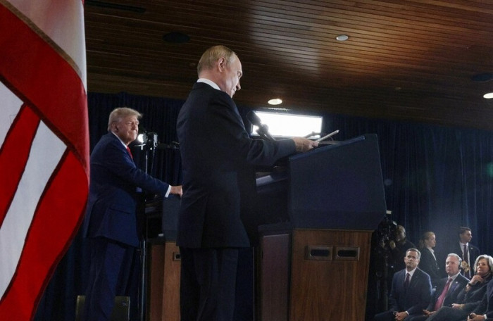 وأجرى بوتين وترامب اليوم، محادثات في ألاسكا حيث التقى الزعيمان في قاعدة "إلمندورف-ريتشاردسون" العسكرية في أنكوريج في اجتماع استمر ساعتين و45 دقيقة.