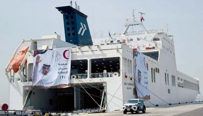 وجاء ذلك بالتعاون مع هيئة الهلال الأحمر الإماراتي متجهة إلى ميناء العريش في جمهورية مصر العربية، تمهيداً لإدخال شحنتها من المساعدات الإغاثية إلى قطاع غزة، في إطار الدعم الإنساني المستمر الذي تقدمه دولة الإمارات للأشقاء الفلسطينيين.