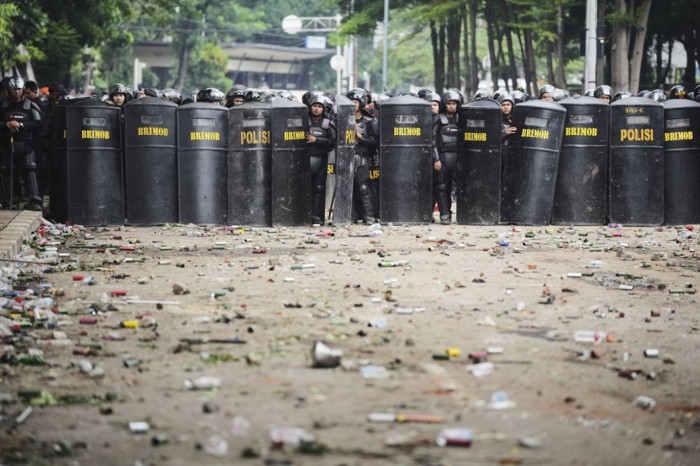 وشهدت أعمال عنف عقب انتشار فيديو يظهر مركبة للشرطة تصدم دراجة نارية أجرة في جاكرتا وتدهس سائقها الشاب خلال تظاهرات للاحتجاج على الأجور المنخفضة والمخصصات للمسؤولين.