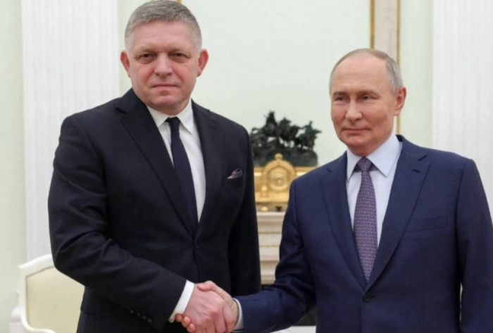 واتهم بوتين خلال لقاء مع رئيس وزراء سلوفاكيا روبرت فيتسو بالعاصمة الصينية بكين، حلف شمال الأطلسي (الناتو)، بمحاولة ابتلاع كامل مساحة فضاء ما بعد الاتحاد السوفيتي، مشدداً بالقول: روسيا «اضطرت إلى الرد على هذا».