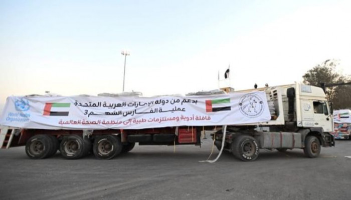 قافلة مساعدات إماراتية تدخل قطاع غزة عبر معبر رفح ضمن عملية الفارس الشهم 3
