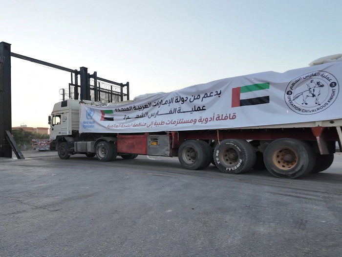 أعلنت دولة الإمارات اليوم السبت، عن عبور 5 قوافل محملة بمساعدات إنسانية إماراتية متنوعة إلى قطاع غزة هذا الأسبوع عبر معبر رفح المصري، وذلك في إطار جهود دولة الإمارات، ضمن عملية "الفارس الشهم 3" الإنسانية لدعم وإغاثة الفلسطينيين خلال الظروف الراهنة.