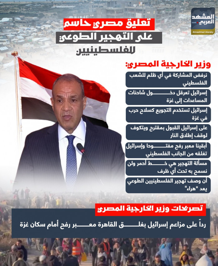 تعليق مصري حاسم على التهجير الطوعي للفلسطينيين (إنفوجراف)
