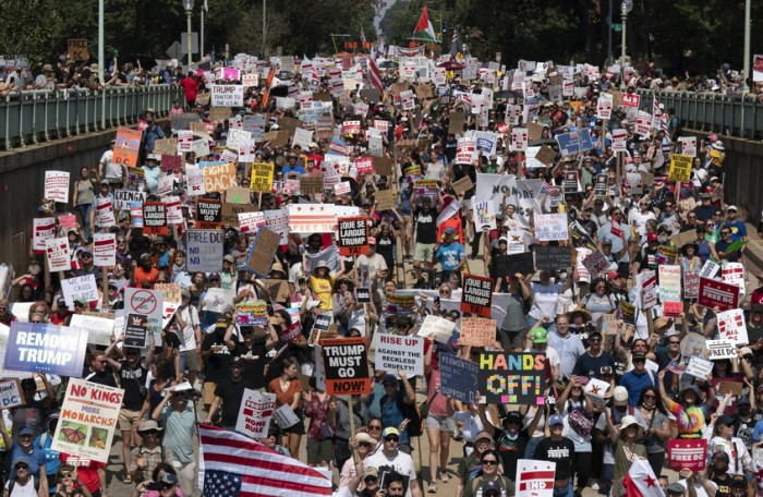 نظم الآلاف من المواطنين تظاهرات في العاصمة الأمريكية "واشنطن"، مساء السبت؛ احتجاجًا على وجود قوات "الحرس الوطني"، التي نشرها الرئيس دونالد ترامب قبل أسابيع.