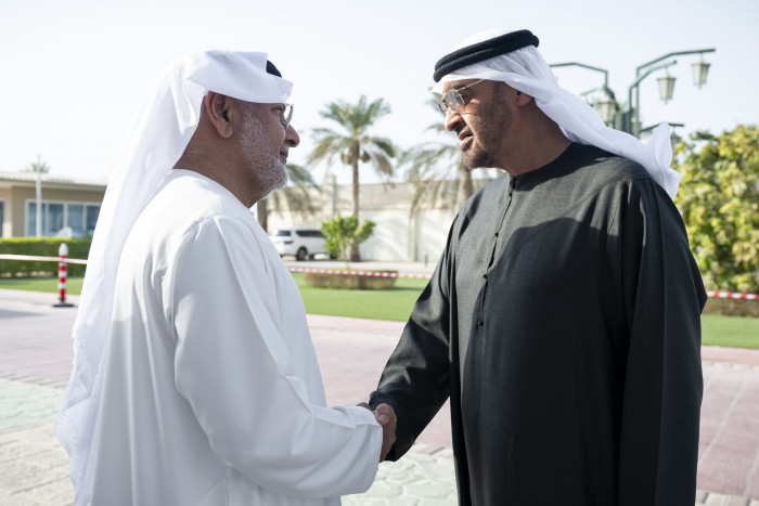 قدم الشيخ محمد بن زايد آل نهيان رئيس دولة الإمارات اليوم الأحد، واجب العزاء في وفاة رجل الأعمال حسين خانصاحب، وذلك خلال زيارته مجلس العزاء في دبي.