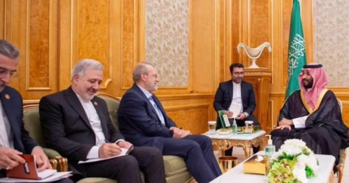 ولي العهد السعودي يناقش مع لاريجاني الأوضاع الإقليمية