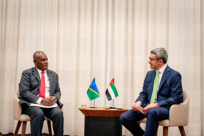 وزير الخارجية الإماراتي يلتقي رئيس وزراء جزر سليمان في نيويورك