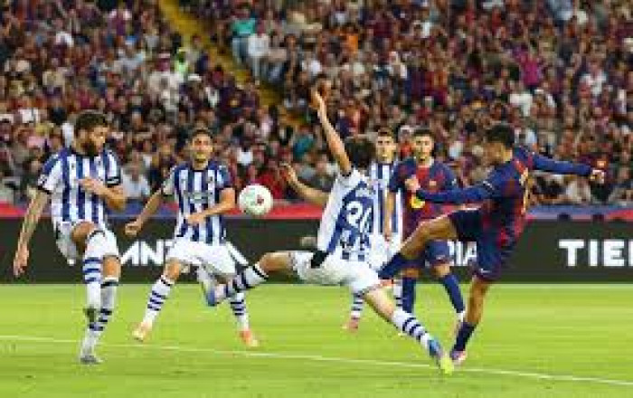قدم البديل الأمين جمال التمريرة الحاسمة لهدف الفوز لروبرت ليفاندوفسكي بعدما سجل جول كوندي هدف التعادل في الشوط الأول ليلغي هدف ألفارو أودريوزولا، ليقود برشلونة للفوز 2-1 على ريال سوسيداد اليوم الأحد، ليتقدم لصدارة جدول ترتيب دوري الدرجة الأولى الإسباني لكرة القدم.