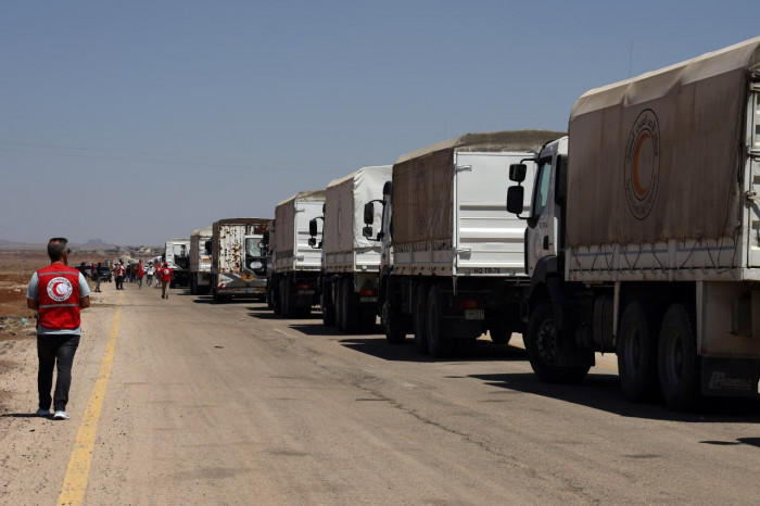 دخلت قافلة مساعدات إنسانية تضم نحو 150 سيارة، مساء الأحد، إلى محافظة السويداء، بمرافقة فرق من الهلال الأحمر السوري، عبر طريق دمشق – السويداء.